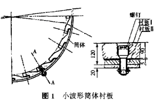 在簡體橫斷面上,沿筒體圓周有24塊小波形襯板一塊壓著一塊,格子型球磨機每塊用2只M36螺釘與筒體固定,相鄰倆塊在筒體長度方向上的間隙錯開,格子型球磨機通過長期對其使用和失效情況的考察發現,失效報廢幾乎都是因螺釘松動引起格子型球磨機筒體漏砂。